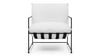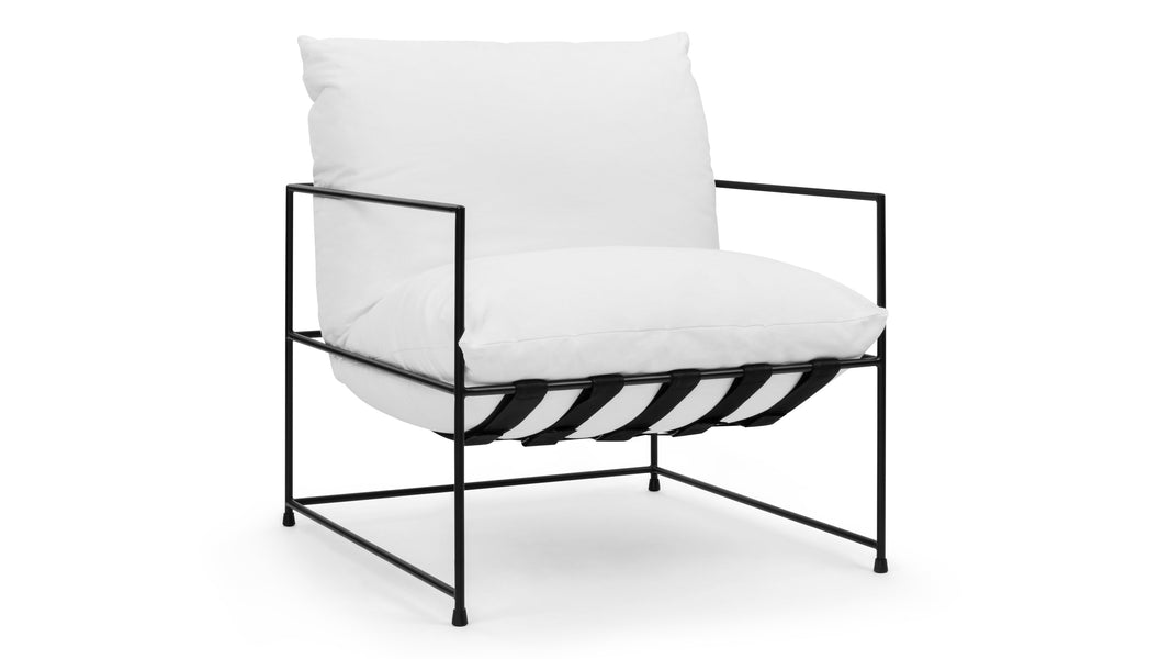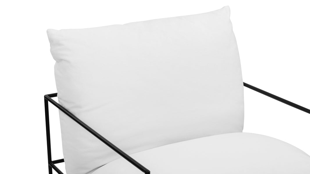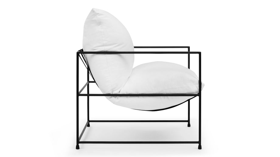 Introducing the Hudson Lounge Chair, a perfect blend of luxury and practicality tailored for modern living environments. Made from hypoallergenic, light-hued linen, this chair is an excellent choice for warm days, featuring a fabric celebrated for its resilience and graceful aging. The minimalist silhouette is enhanced by a sleek, thin metal frame finished in matte black, ensuring lightweight yet robust support complemented by a hammock-style suspension for superior comfort. Ideal as a standout piece in a tranquil reading nook or arranged in a group around a coffee table, the Hudson Lounge Chair harmoniously integrates with various interior aesthetics. Its inviting soft linen upholstery encourages relaxation, while the airy frame keeps a tidy, uncluttered appearance, making it a versatile addition to both modern and traditional settings. Whether used for lounging or as a stylish accent, this chair elevates any space with its captivating simplicity and undeniable comfort.