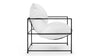 Hudson Lounge -stolen viser et raffineret, minimalistisk design, der problemfrit kombinerer praktisk med moderne stil. Med sin slanke metalramme og hængekøje-inspirerede siddepladser tilbyder denne stol et frisk, strømlinet udseende, hvilket gør det til et fremragende valg til en række indvendige miljøer.