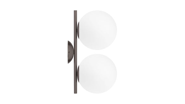 Inspiriert von der Leichtigkeit und Anmut eines talentierten Jongleurs, ist die IC Double Wall and Ceiling Light eine Sache von Schönheit und Eleganz. Die IC Double Wall and Ceiling Light zeichnet sich durch zwei opale Kugeln aus, die "schwerelos" auf ihrem Metallbügel montiert sind. Sie kann sowohl als Wandleuchte als auch als Deckenleuchte für schmale Räume wie den Flur verwendet werden. Sie ist ein vielseitiges Objekt mit geringem Platzbedarf und großer optischer Wirkung.